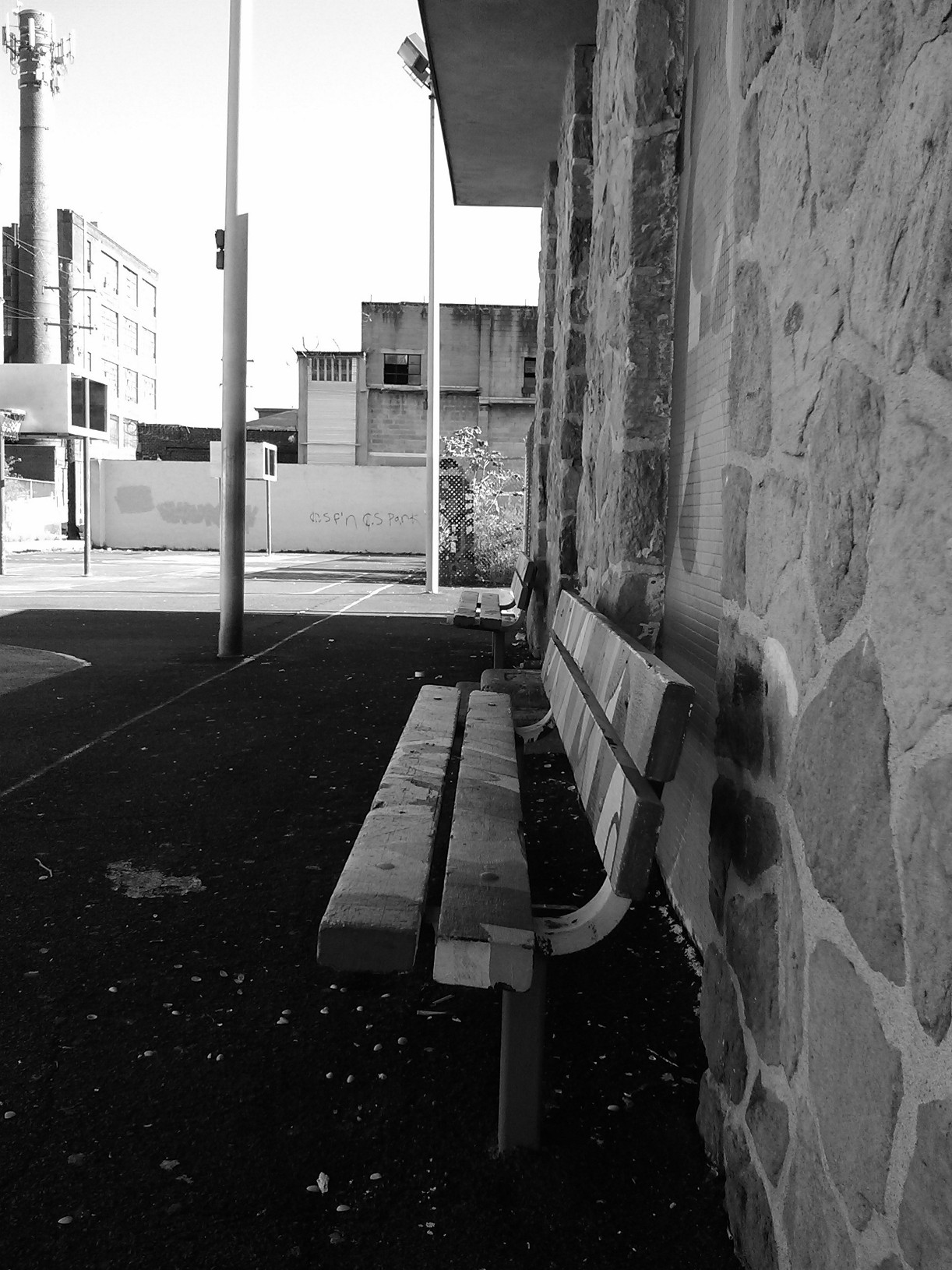 My brothers called this place, ‘the courts’. They spent hours fine tuning their skills playing ball from dawn to dusk. Panati was the community watering hole, a place where everybody went–kids played in the kid section, women and young girls sat on the benches near the sprinklers to gossip and the fellas ran ball, drank 40’s and talked trash all day. Churches would use Panati for Vacation Bible School and the city would sponsor a community day camp most summers. My older brother would drag my sister and I to the courts from time to time and we were forced to sit and view the greatest display of collective arrogance, guys would holler at girls who just happen to be walking by, they talked trash about each others game and ‘busin’ on any victim who came into view all while playing pick up games. Things would get serious if you invoked someone’s mom into the back and forth. The highlight of Panati was the summer basketball leagues when teams from all over the city would dazzle the night crowds. These community events became infrequent as violence began to escalate towards the mid and late 80’s–tournaments went elsewhere. Panati is now a shell of its former self ,but I choose to remember that this place raised several generations, provided a community gathering place for meetings and election booths and even served as a memorial for victims of violence taken too soon. I was shocked at the small size of this place–when you’re young things appear larger than life and the memory is greater than the reality. I felt like a giant walking in a foreign land.